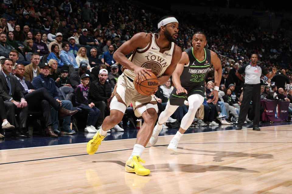 勇士:戈贝尔15分17篮板,麦克丹尼尔斯14分3篮板3助攻3盖帽,兰德尔18分7篮板,迪文琴佐5记三分15分8助攻,里德3记三分15分7篮板3助攻3抢断,海兰德3记三分17分7篮板5助攻。